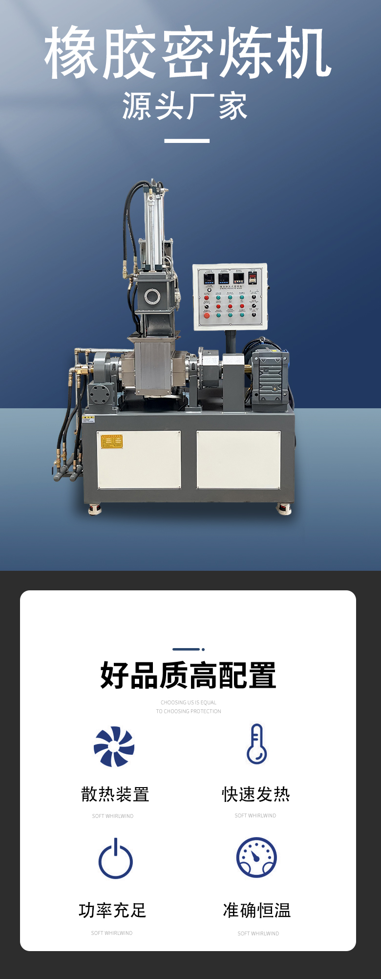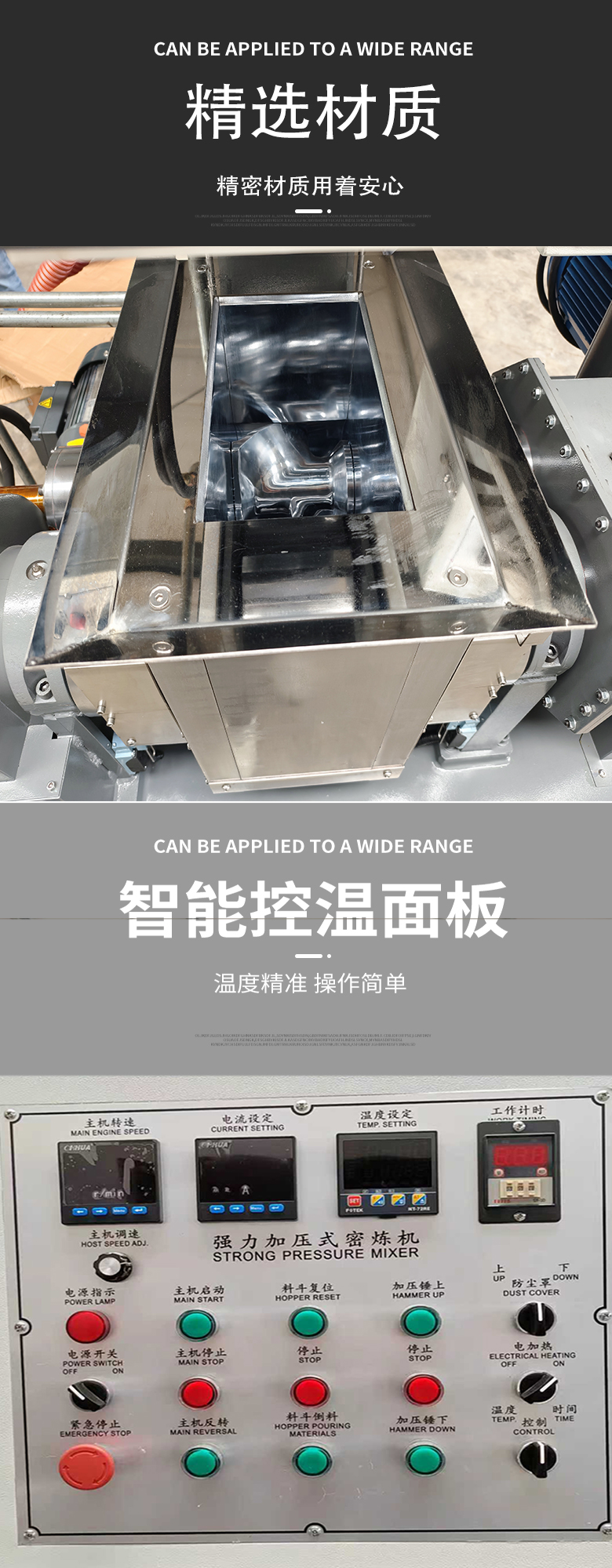 本机适用于塑料、橡胶、合成胶、热熔胶及各种低粘度物料等各式化学原料的搅拌、捏合、分散。